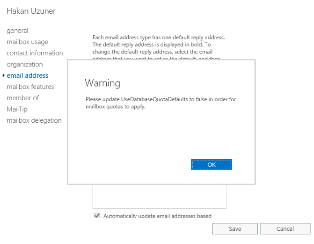 Bu uyarıya OK diyerek değişikliğin gerçekleşmesini sağlayabilirsiniz. Yani aslında değişiklik gerçekleşiyor ama böyle bir uyarı çıkarıyor. Bu bir BUG olup CU6 da düzeleceği söylendi arkadaşlar. Ondan çok kafanıza takmayın.